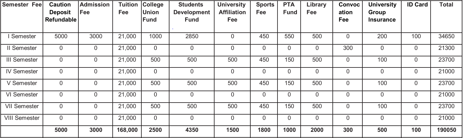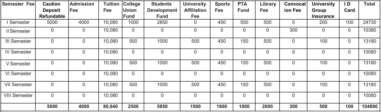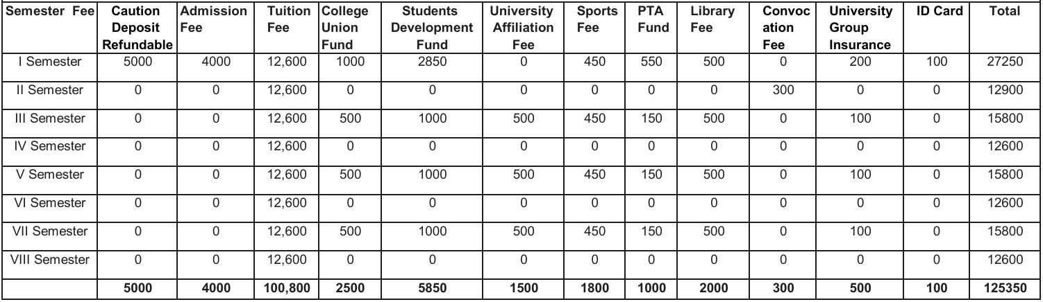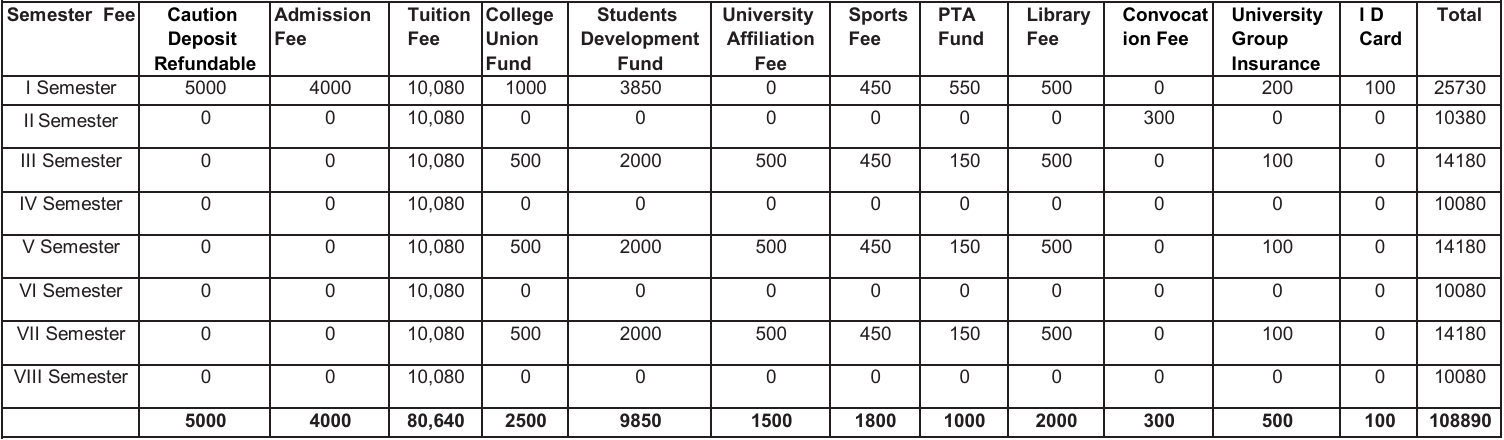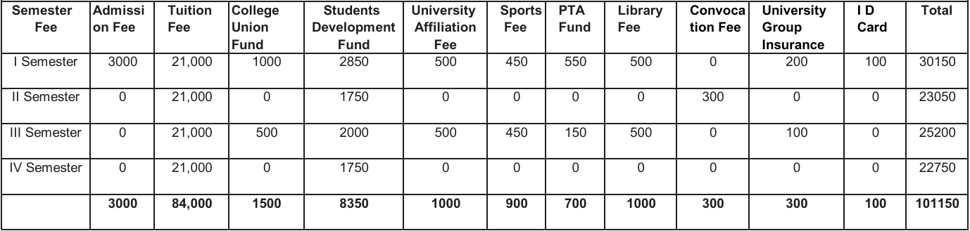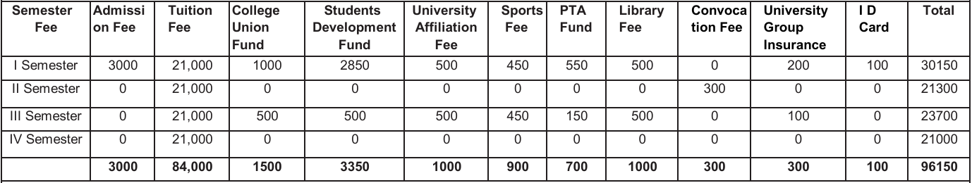 BBA Degree Fee Structure (As per Revised University Fee Order)